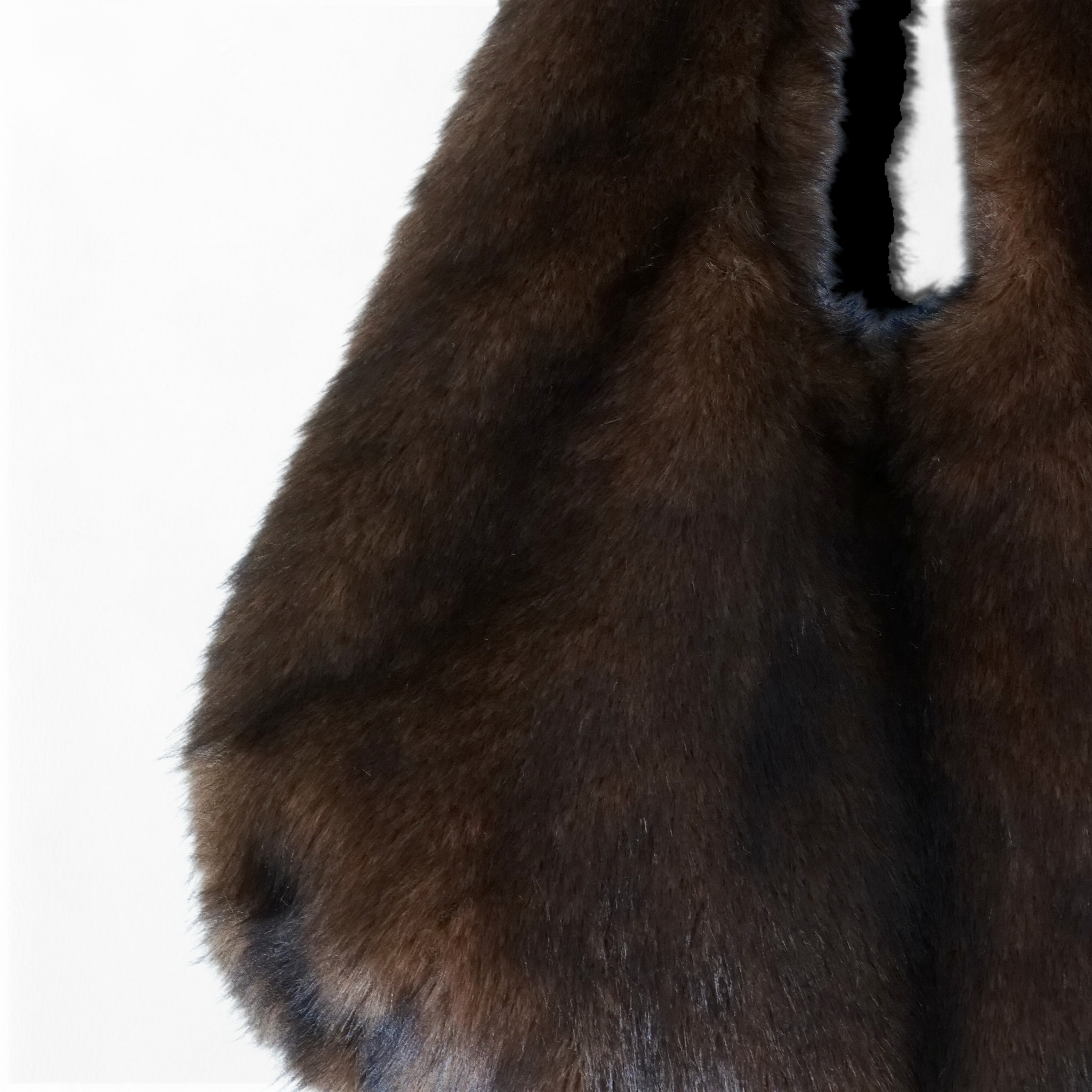 Bolso hobo efecto pelo. Estructura suave. Forro y bolsillo interior. Cierre de botón a presión. Asa fija de hombro.