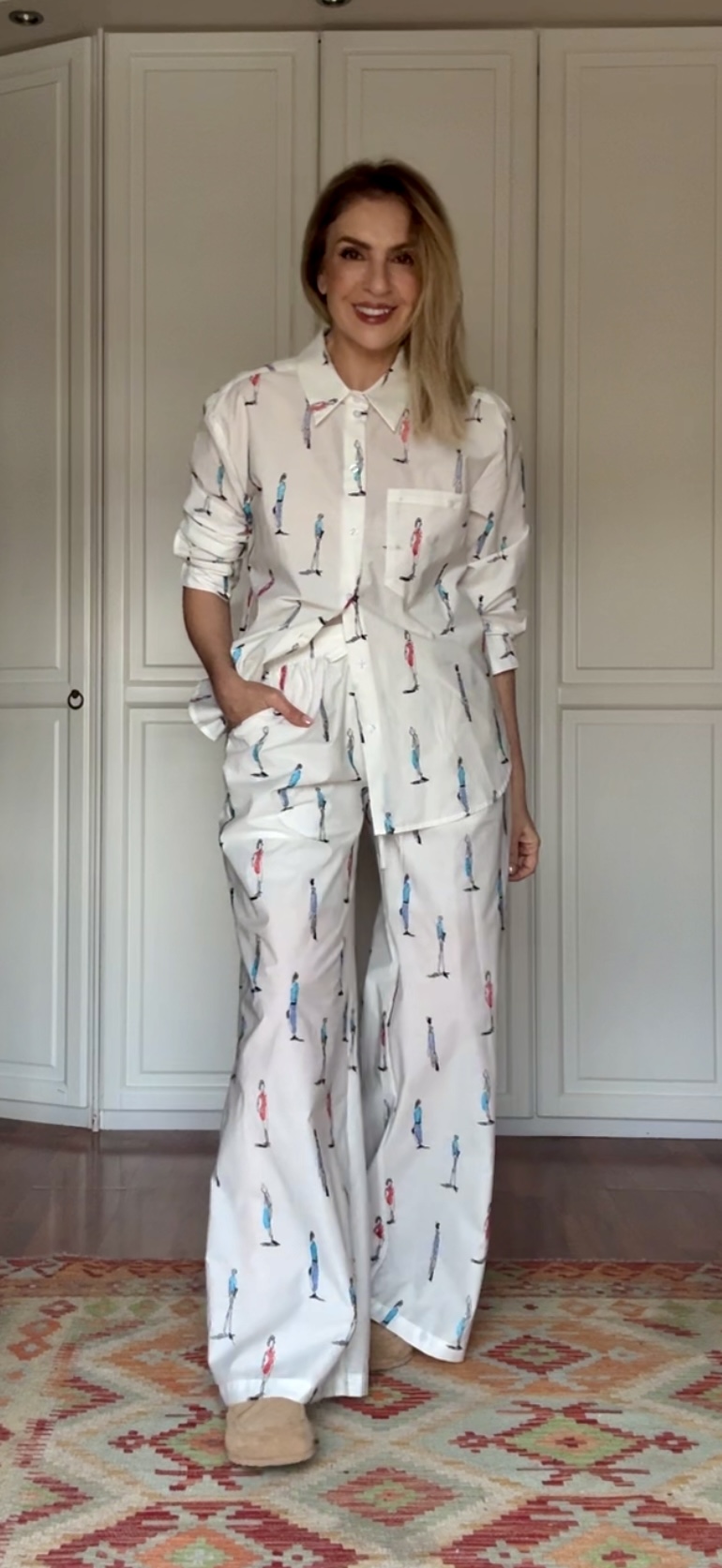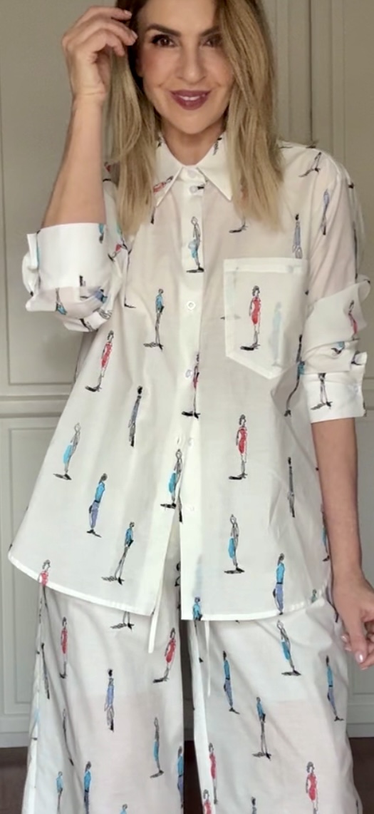 Conjunto estampado figuras. Con pantalón y camisa. Pantalón con bolsillos delanteros y cordón. Camisa de mezcla de algodón con cuello camisero. Bolsillo en el pecho. Diseño estampado. Mangas largas con puños. Cierre frontal con botones.