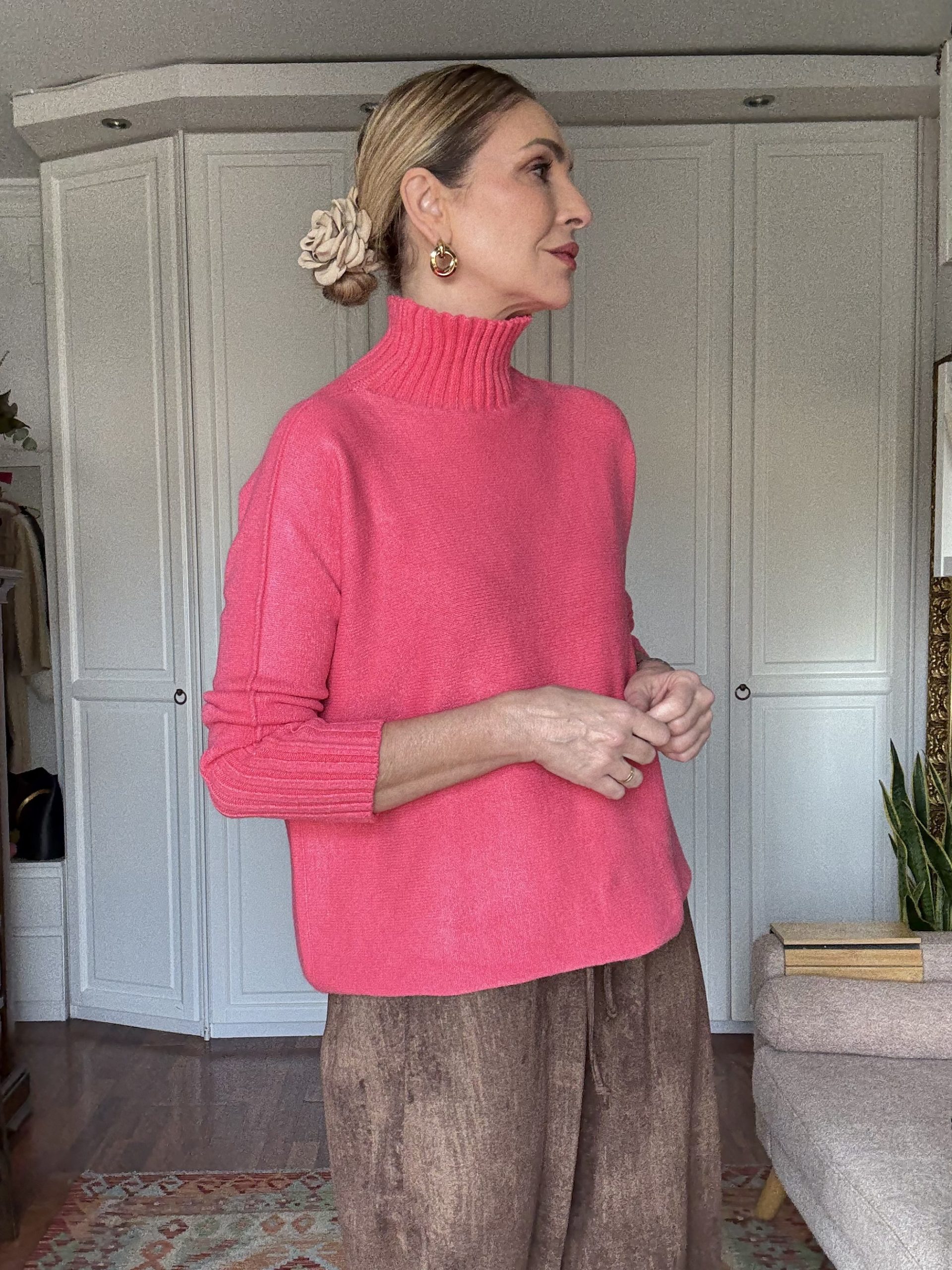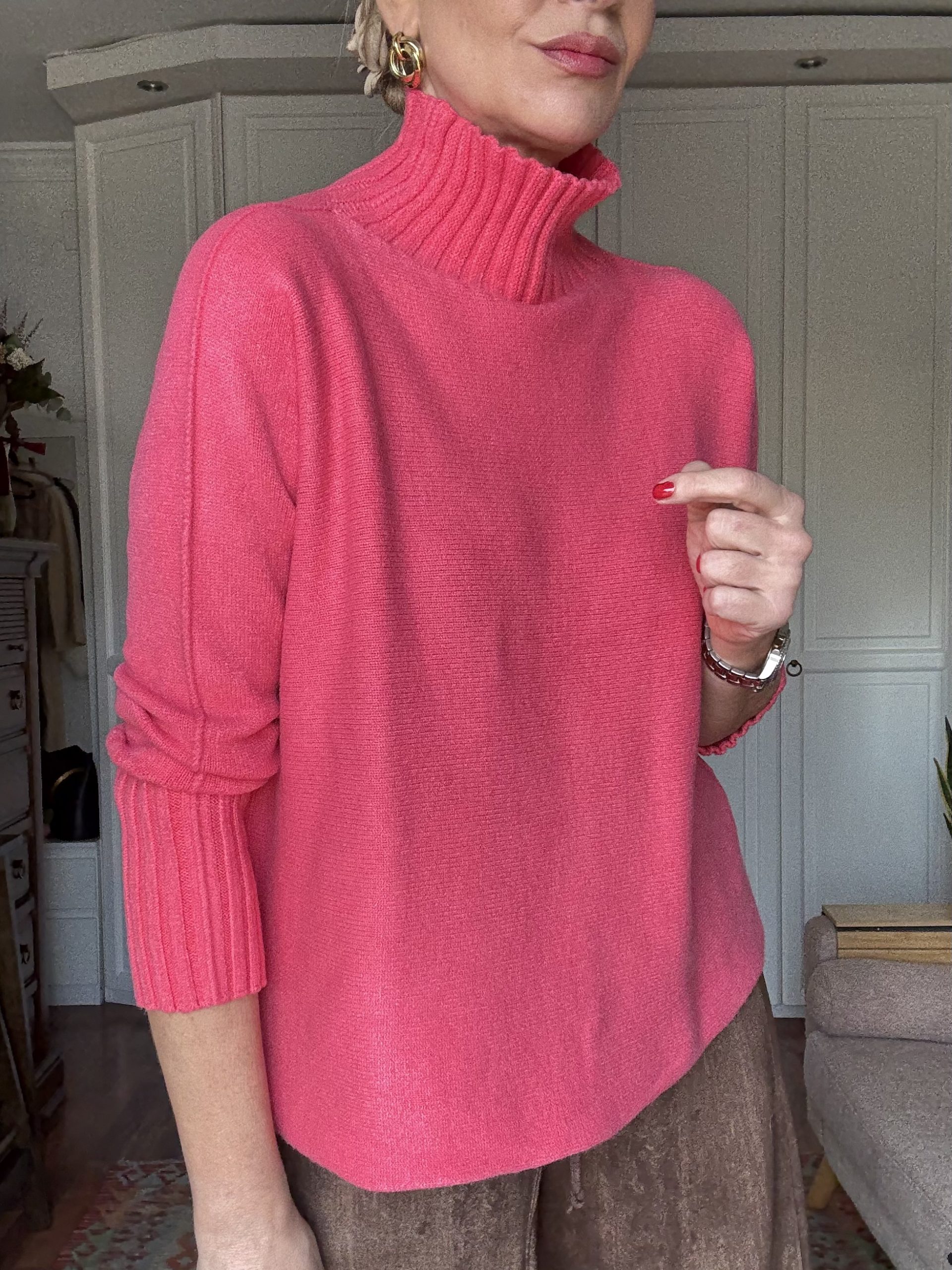 Jersey de punto con cuello alto. Acabados en rib. Muy suave al tacto.