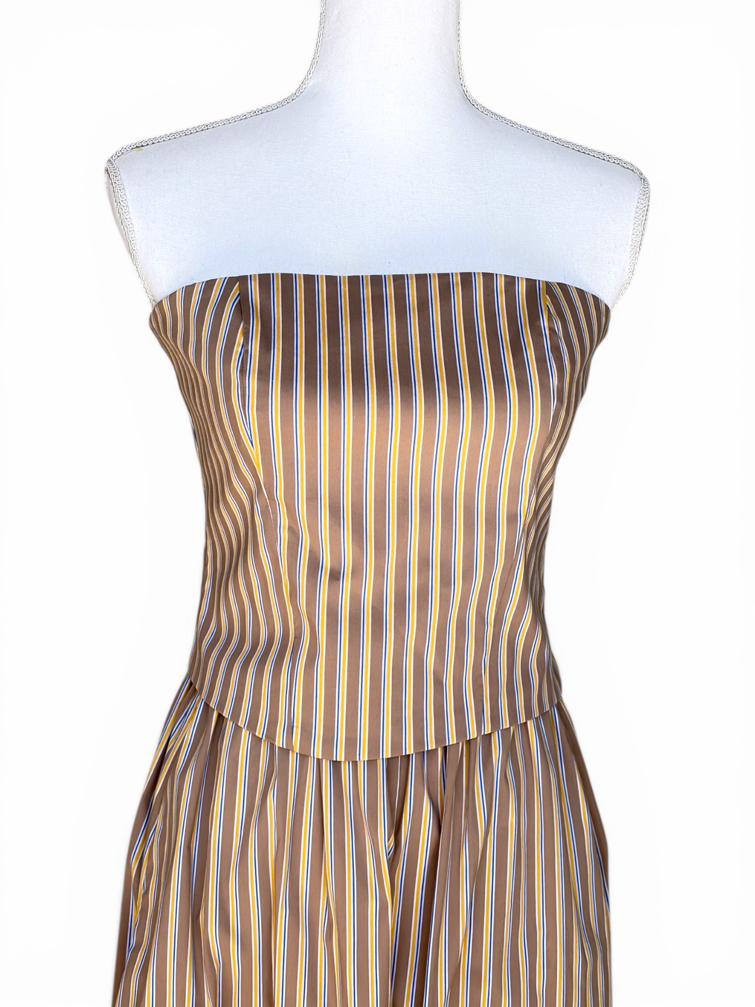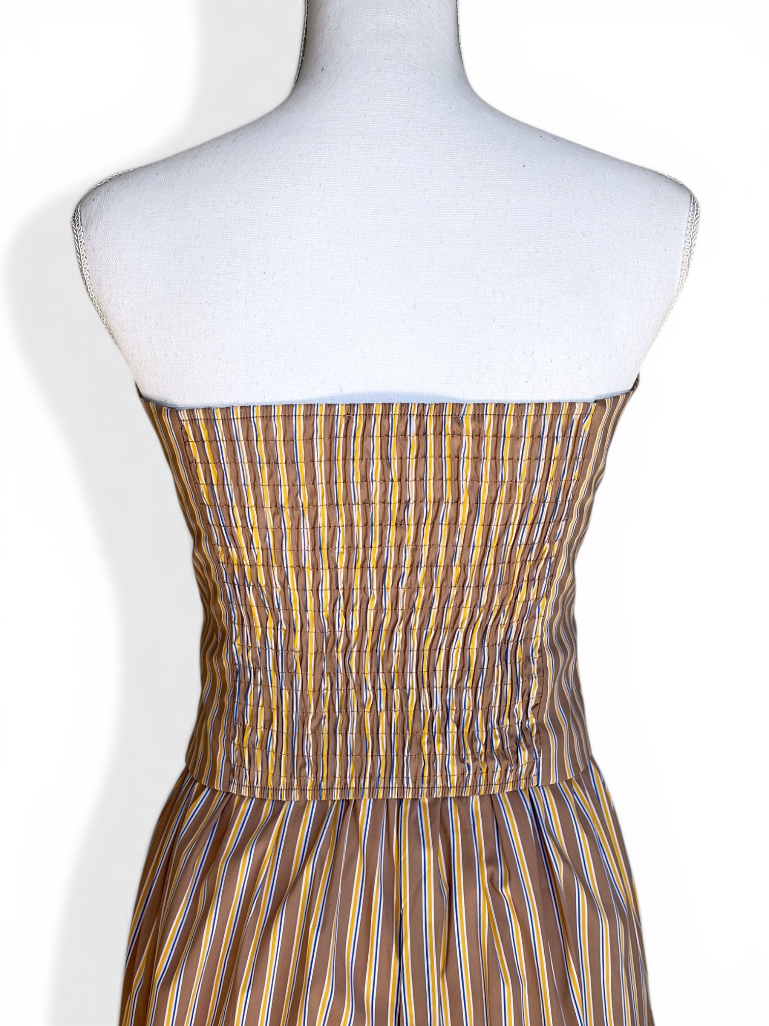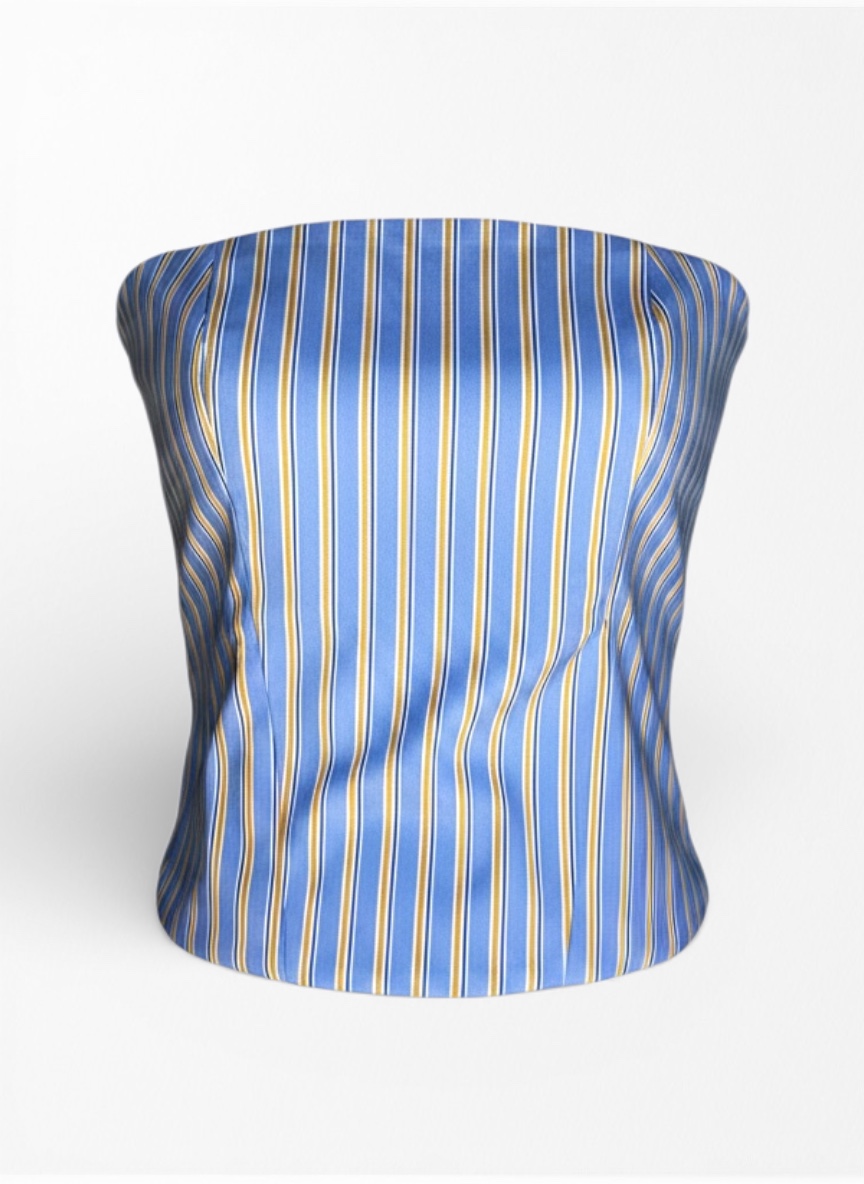 Top badeau con estampado de rayas. Espalda de panel de nido de abeja. Escote palabra de honor. Disponible en dos colores.