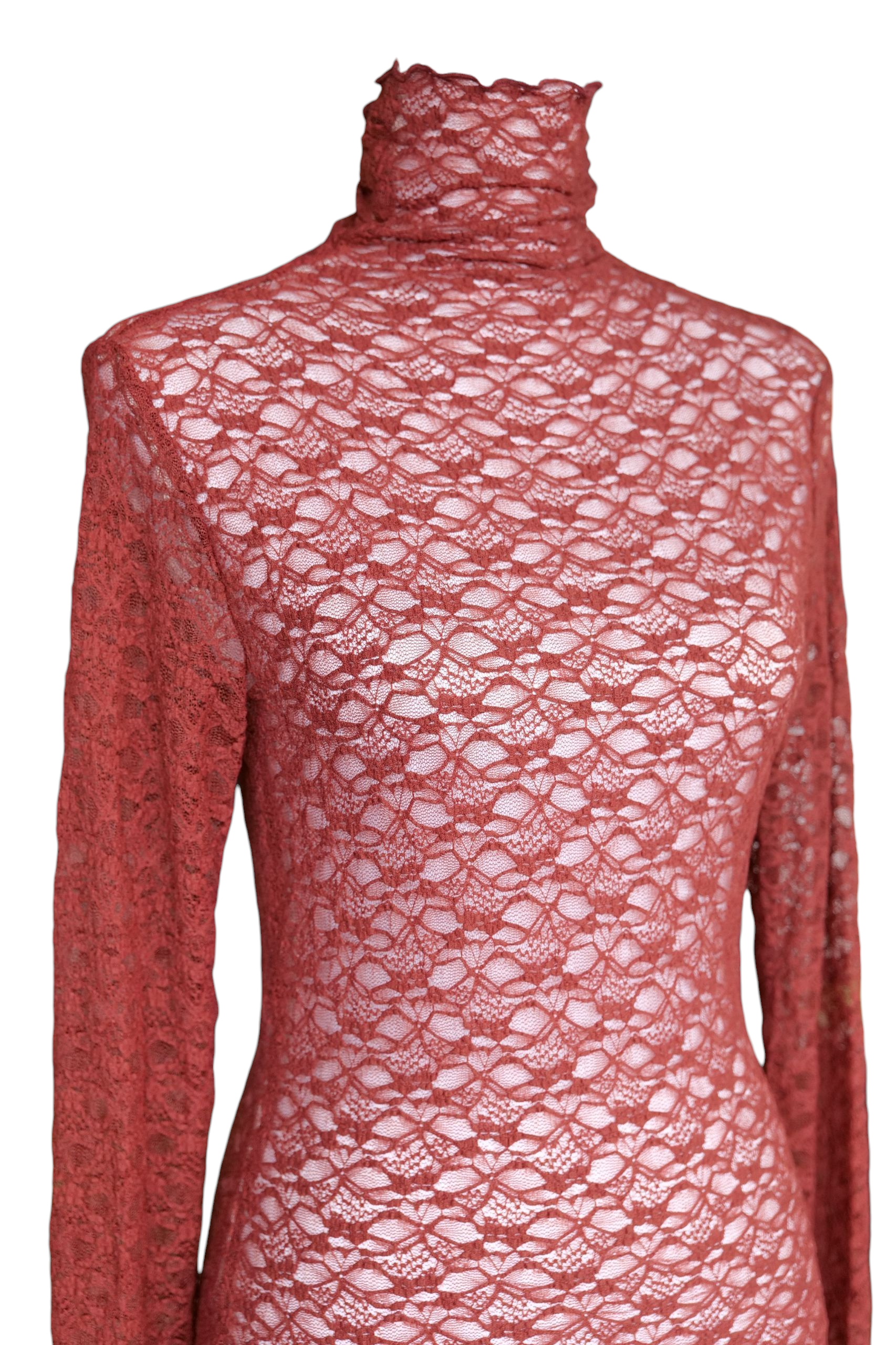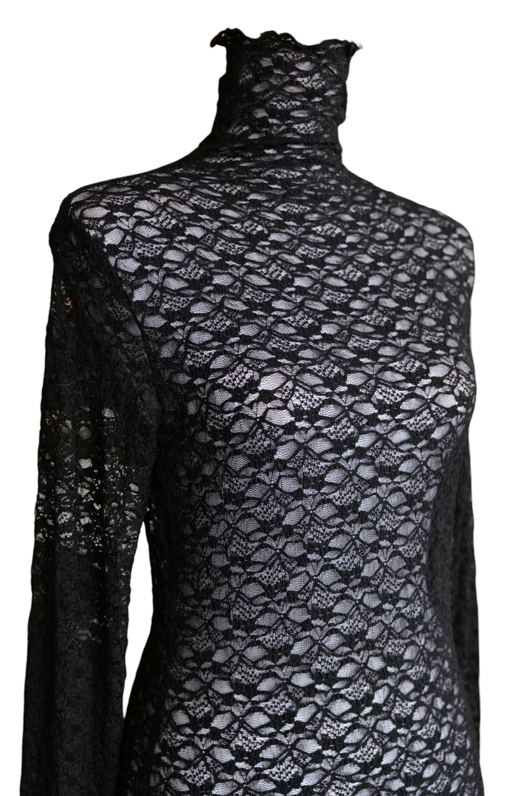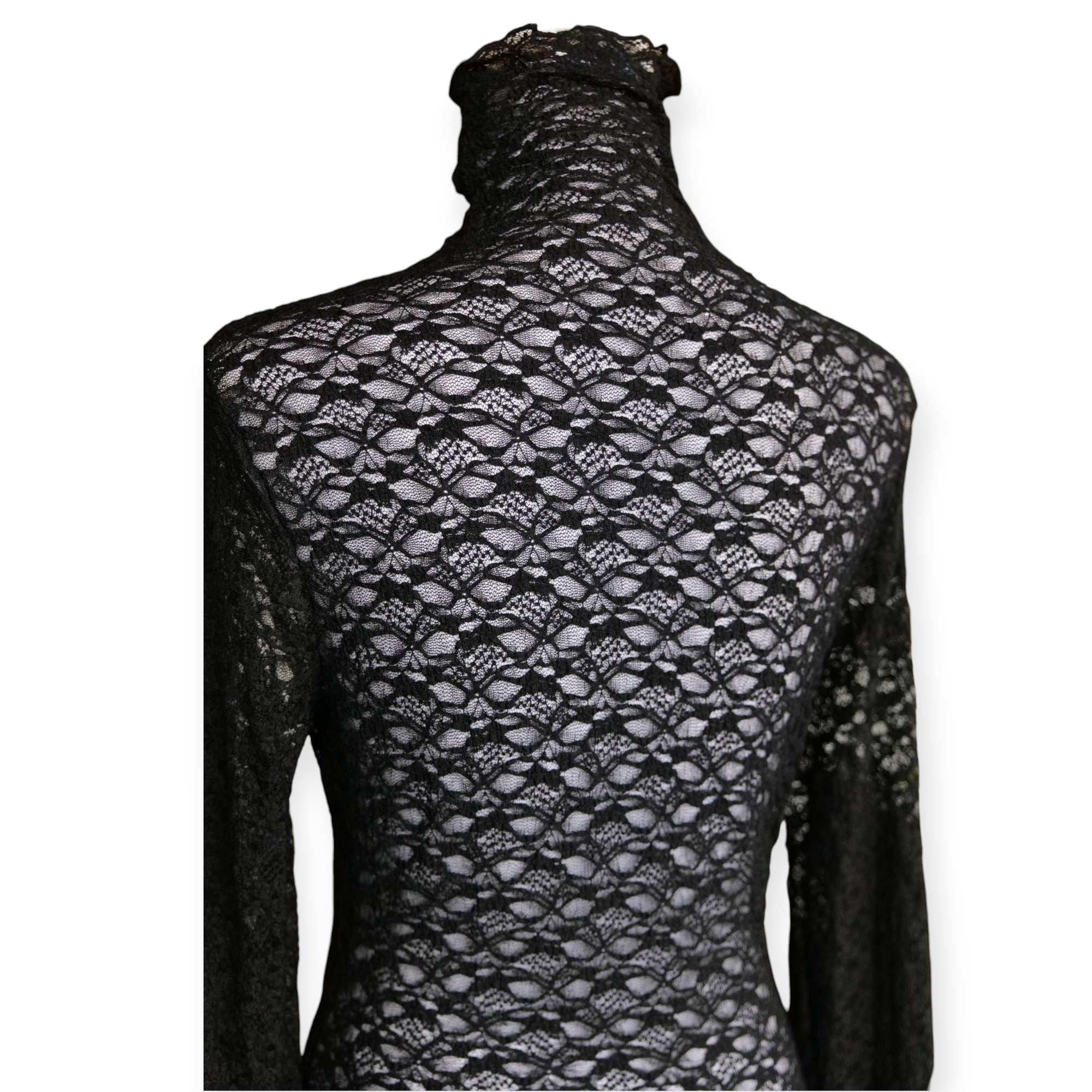 Top de cuello alto en tejido elástico de encaje. Manga larga ligeramente acampanada.